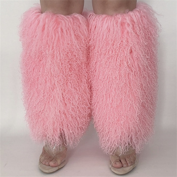 Women Real Mongolian Fur Leg Warmers Fall Leggings Boots Stocking Lolita Punk Boot Cover Harajuku Fur Foot Warming Cover
