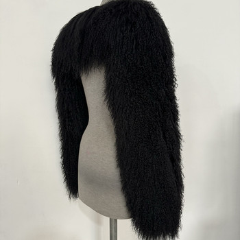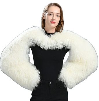 Vero mongolo maniche in lana di pecora elegante giacca corta da donna vera pelliccia scialle con mantello da sera