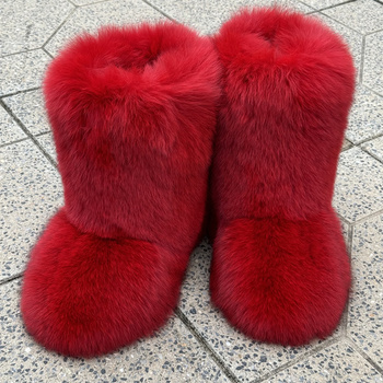 Stivali di pelliccia di volpe vera moda donna inverno peluche caldi stivali da neve calzature di lusso da ragazza in pelliccia