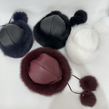 Cappello invernale da donna in vera pelliccia di volpe cappello in pelliccia naturale Lei Feng