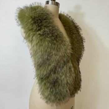 เสื้อแจ็กเก็ตแขนกุดเปิดหลังคอวีลึกเสื้อกั๊กขนสัตว์เทียมหรูหราหรูหราสำหรับผู้หญิง